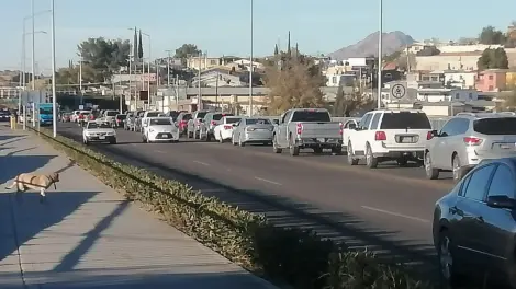 Una fila de más de un kilómetro de largo se pudo observar el día domingo 27 de noviembre en la garita Mariposa por el regreso de aquellos que salen por el fin de semana y los visitantes que vienen a realizar compras navideñas.