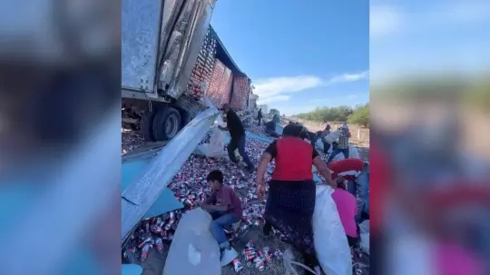 Luego de que se presentara un accidente carretero que se cobró la vida de un hombre, decenas de personas aprovecharon para llevarse la mayor cantidad de latas de cerveza vacías que eran transportadas en uno de los tráilers que participó en el siniestro.