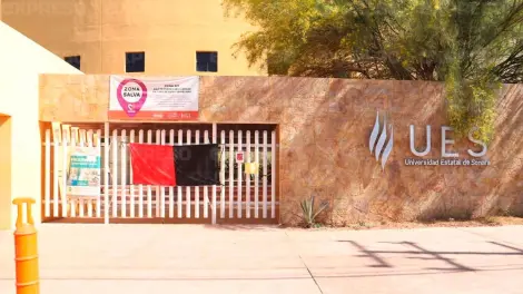 Por primera vez en la historia de la Universidad Estatal de Sonora (UES), se colocaron las banderas rojinegras en señal de huelga por parte del Sindicato Único de Trabajadores de dicha institución.