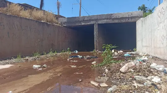 Con base a la información de los vecinos, el escurrimiento se origina en los límites de su colonia con la Nacionalización del Golfo, y encharca alrededor de 500 metros, el canal embovedado tiene basura incendiada, y en el fondo está el desagüe repleto de los desechos que arrastró el agua potable.