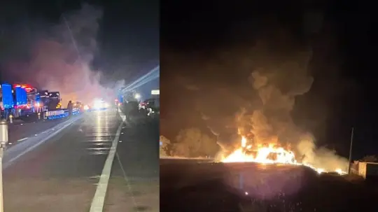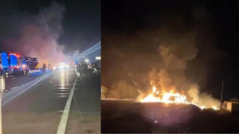 Aparentemente el conductor del tráiler, perdió el control del vehículo debido a una falla mecánica y logró salir de la cabina antes de que se incendiara.