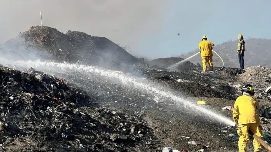 Un incendio en el relleno sanitario ubicado al norte de Guaymas, movilizó durante la mañana de este lunes a cuerpos de emergencias.