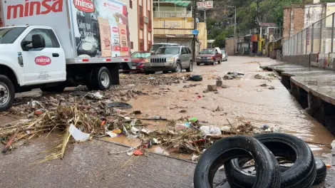 Destrozos, bardas, anuncios y árboles caídos, además de vehículos varados y calles inundadas, fue el saldo que dejó una intensa lluvia acompañada de granizo que duró por más de un hora en la frontera de Nogales, Sonora.