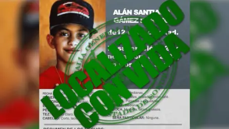 La Fiscalía General de Justicia del Estado de Sonora (Fgjes) informó que Alán Santiago Gámez Durazo, menor de 12 años que había desaparecido en Ciudad Obregón, fue localizado sano y salvo.