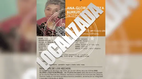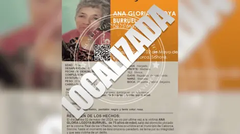 Tras dos días de haber desaparecido, la señora Ana Gloria Lozoya Burruel, de 75 años de edad fue encontrada sin vida cerca de su hogar en el fraccionamiento Real de los Viñedos, en Caborca, Sonora.