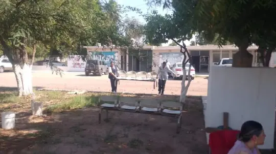 En plena ola de calor, la Coordinación Médica Local del municipio de Huatabampo carece de aires acondicionados, afectando directamente a los pacientes y empleados, quienes han optado por dar atención debajo de los árboles.