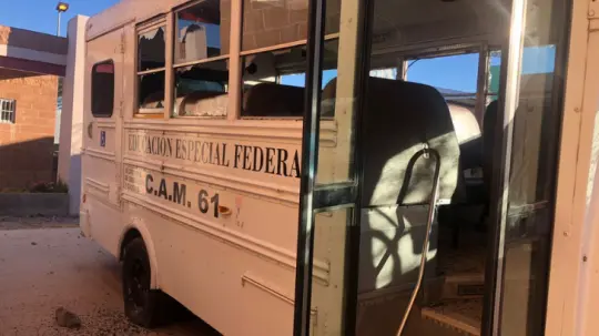 Las cámaras de seguridad de la institución grabaron el momento en el que los infiltrados dañaron el camión escolar e incluso bailan sobre el techo del vehículo, posteriormente rompen casi todos los vidrios y el parabrisas de la unidad, dejándolo en peores condiciones, lo que impedirá su movilización por largo tiempo.