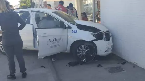 Tras el fuerte choque pierde el control del volante, se sube a la baqueta y termina su trayectoria impactando en un establecimiento comercial.