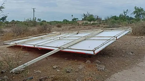 Vientos derriban árboles, postes y espectaculares en Navojoa