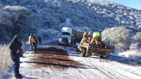 Las nevadas del Frente Frío Número 16, que se registraron mayormente en la región de Cananea y Agua Prieta, provocaron cierres temporales de la carretera Sonora-Chihuahua, dejando por horas aislada a la ciudad minera.
