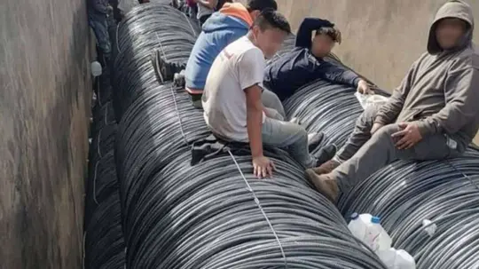 Migrantes viajaban entre rollos de alambre de un tren en Empalme