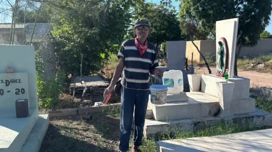 Perdió a su hijo en julio, hoy limpia su tumba para el Día de Muertos