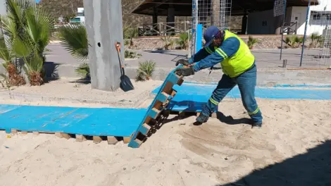 A principios del mes de marzo comenzaron con el camino de madera sobre la arena, el cual sirve para que puedan acceder personas en silla de ruedas o con bastones, y la semana pasada trabajaron en el área de la escollera, que "sobrevive" gracias a los cuidados de los bomberos, ya que desde hace siete años el Gobierno del Estado dejó de tener personal asignado para ese proyecto.