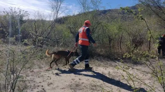 El entrenador explicó que la búsqueda con perros de raza mantrailing (perros de búsqueda), se distribuyeron en dos sectores diferentes; para ello una persona de Álamos se escondió, mientras que ellos no sabían dónde se encontraba.