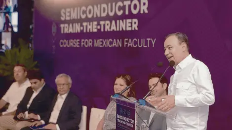 “Hoy iniciamos este curso de inglés en semiconductores, que es una plataforma en línea donde se tendrá acceso al curso de manera virtual, para que la industria cuente con un recurso humano, con profesionistas que tengan conocimiento de inglés, sobre todo que entiendan la terminología técnica de los procesos, esto derivado de la inversión en maquinaria que es muy alta y que requiere de personas altamente capacitadas en el tema”, indicó.