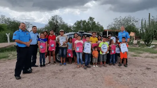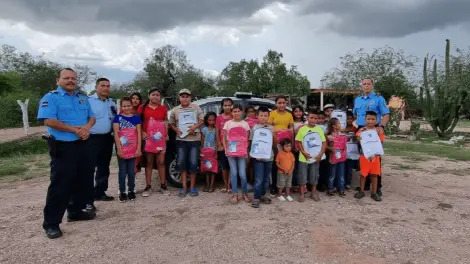 Policías de Cajeme donan útiles escolares a pequeños del ejido Xóchitl