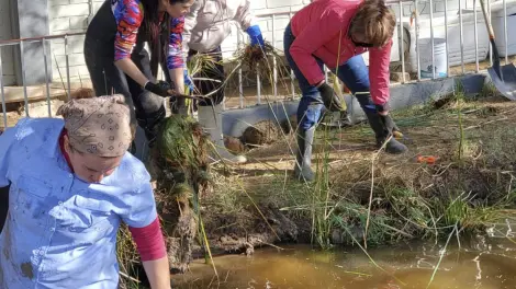 “Se esta reconstruyendo con piedra y hule el estanque en donde conviven los pececitos, debido a que el crecimiento de maleza, entre otros factores, provocaría mortandad de los mismos”, comentó la docente.