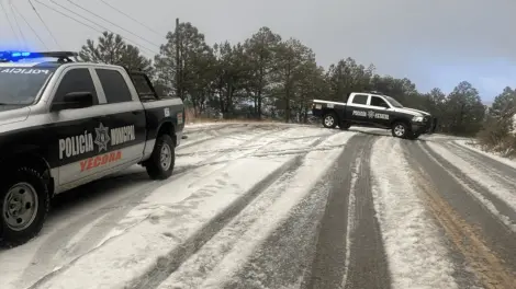 La tarde del domingo 17 de noviembre, debido a la caída de agua nieve, en el municipio de Yécora, se reportaba tránsito lento en Mesa del Campanero.