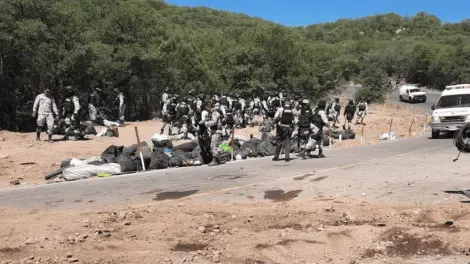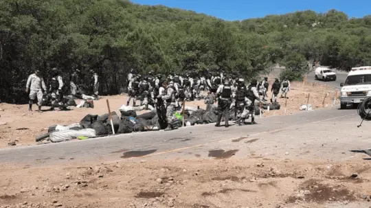Decenas de integrantes de la guardia se miraban yendo y viniendo mientras valoraban la situación que no pasó a mayores, algunos de ellos recostados a la orilla de la carretera, otros sentados o recargados en algún árbol y la mayoría de pie.