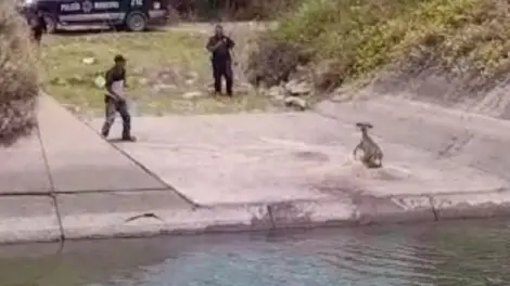 Un venado que resbaló hacia las aguas del Canal Bajo, en el Valle del Yaqui, fue rescatado por un ciudadano y elementos de la Policía Municipal, quienes hicieron las labores necesarias para evitar que se ahogara.