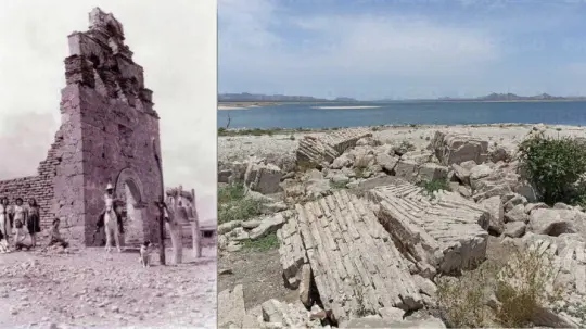 Los bajos niveles de agua en la presa Álvaro Obregón han ocasionado que resurjan las ruinas de lo que fue el pueblo viejo de Buenavista, lugar donde se encontraba una escuela, una iglesia y un panteón.
