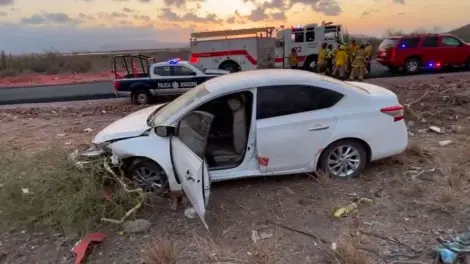 Una salida de camino ocurrida la mañana de este domingo en el libramiento hacia San José, en Guaymas, dejó dos mujeres lesionadas y daños severos en el vehículo. Fueron trasladadas a un hospital para su atención.