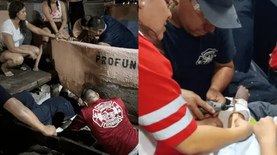 Un menor de 3 años de edad fue rescatado luego de permanecer varias horas con su brazo atascado en la tubería de una alberca.