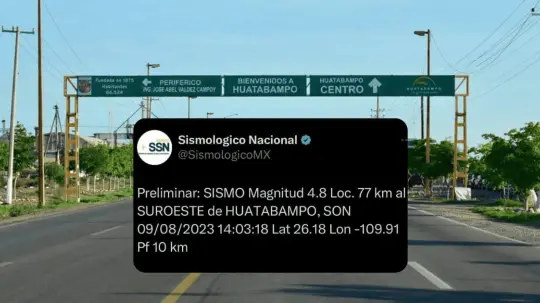 El Servicio Sismológico Nacional (SSN), a través de su plataforma registró en punto de las 13:03:18 horas (tiempo del Pacífico), un sismo de magnitud 4.8 con epicentro a 77 kilómetros al sureste de Huatabampo, con 10 kilómetros de profundidad.
