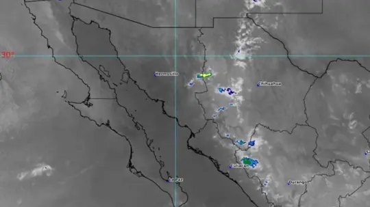 El Servicio Meteorológico Nacional (SMN) ha informado que para las próximas horas (entre las 21:00 horas y 00:00 horas) se pronostican lluvias aisladas con posibles descargas eléctricas en el este de Sonora.