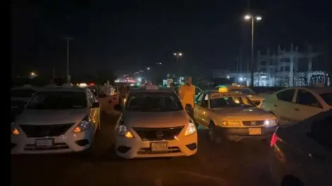 Taxistas bloquearon la salida norte de Guaymas en una protesta contra la Dirección de Tránsito Municipal, porque esta les decomisó tres vehículos que circulaban con las placas vencidas y documentación incompleta.