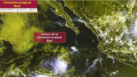 La Tormenta Tropical Bud, ubicada a 790 kilómetros al sur de la Península Baja California, no representa peligro para tierra, según el Centro Nacional de Huracanes de Estados Unidos (NHC).