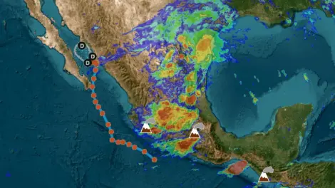 Actualmente, el fenómeno se encuentra a 25 kilómetros al oeste-suroeste de Topolobampo y a 45 kilómetros al suroeste de Los Mochis, Sinaloa.