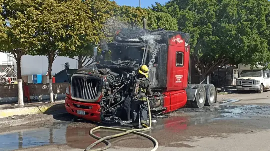 Un tráiler que se encontraba estacionado en las inmediaciones de un conocido taller en la colonia Juárez, se comenzó a quemar luego de que presentara una presunta falla mecánica, dejando como saldo pérdidas totales.