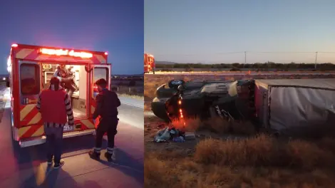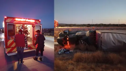 Dos personas lesionadas fue el saldo que dejó el volcamiento de un camión de carga que se registró en la carretera internacional que se registró esta mañana a la salida sur de Empalme.