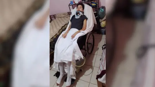 Kevin Alberto, en la actualidad esta tetrapléjico y recibe cuidados personales por parte de su madre las 24 horas del día.
