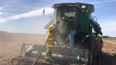 "Esta muy seca la gavilla del trigo y la maquina tiene varias bandas que van friccionando, y al momento de generar calor se van generando chispas que al final detonan el incendio", apuntó.