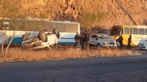 Una persona lesionada y cuantiosos daños materiales dejó como saldo un volcamiento que se registró en la carretera Guaymas-Empalme, la unidad quedó con los neumáticos hacia arriba sobre la carretera.