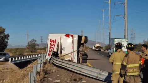 El volcamiento ocurrió en el kilómetro 10 de la Carretera Internacional México 15, a la altura del puente elevado, cuando el operador perdió el control de la unidad y posteriormente se sobrevino la salida de camino, quedando sobre el costado derecho de la rua.