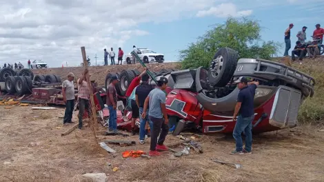 Cuantiosos daños materiales y el efecto rapiña, fue el saldo de una volcadura de un tráiler cargado de toneladas de varillas sobre la carretera federal México 15, al sur del municipio de Navojoa.