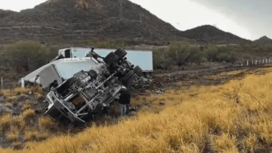 Tráiler vuelca en la carretera Guaymas-Hermosillo