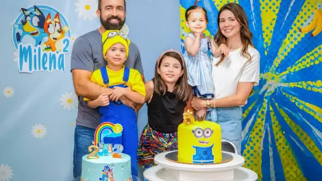 El salón de eventos infantiles Giocando fue el escenario de una alegre celebración de cumpleaños para los hermanitos Milena y Manuel Martínez Araujo. La pequeña Milena, quien cumplió dos años, tuvo un pastel temático de Bluey, mientras que Manuel, quien celebró su quinto cumpleaños, disfrutó de un pastel decorado con sus personajes favoritos, los Minions.