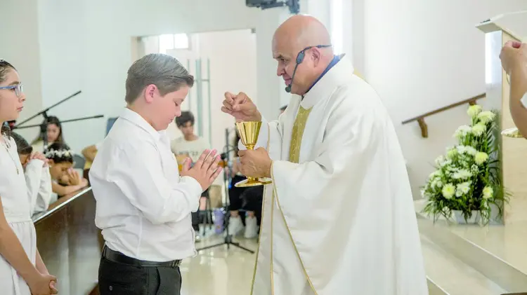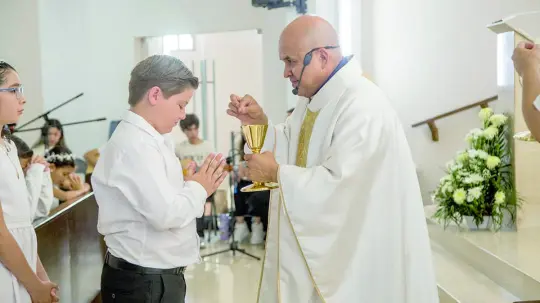 Con gran alegría, Juan Pablo Alonso es acompañado de su familia para recibir su 1era Eucaristía