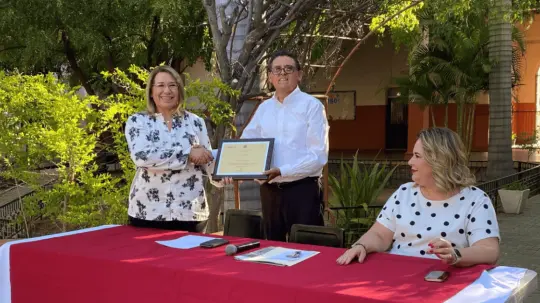 Acompañada por “alumni” de distintas generaciones, la directora de la institución educativa, María Laura Cuétara de Sánchez, recibió el distintivo de manos del director del internado, Obed González Reyna, que agradeció el apoyo y compromiso demostrado por las alumnas al realizar su servicio social desde hace más de tres décadas. En el evento, también estuvo presente la subdirectora de Programa Social de la Secretaría de Educación y Cultura, Rocío del Carmen Salazar Ortega, quien también es egresada del colegio Liceo Thezia.